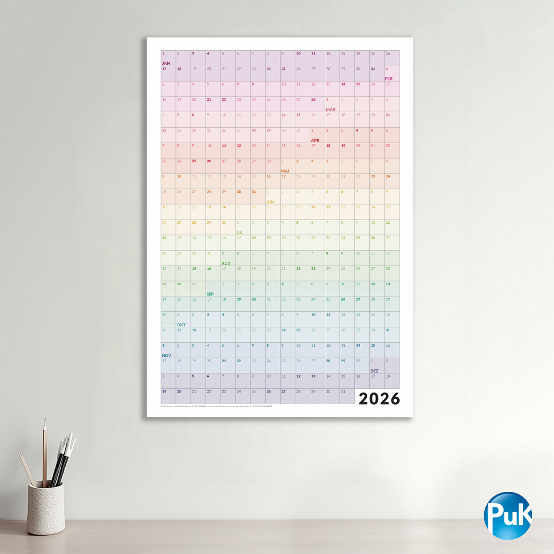 XL Wandkalender 2026 DIN A1 - 12 Monate gefalzt