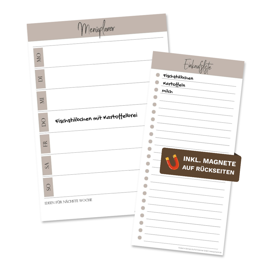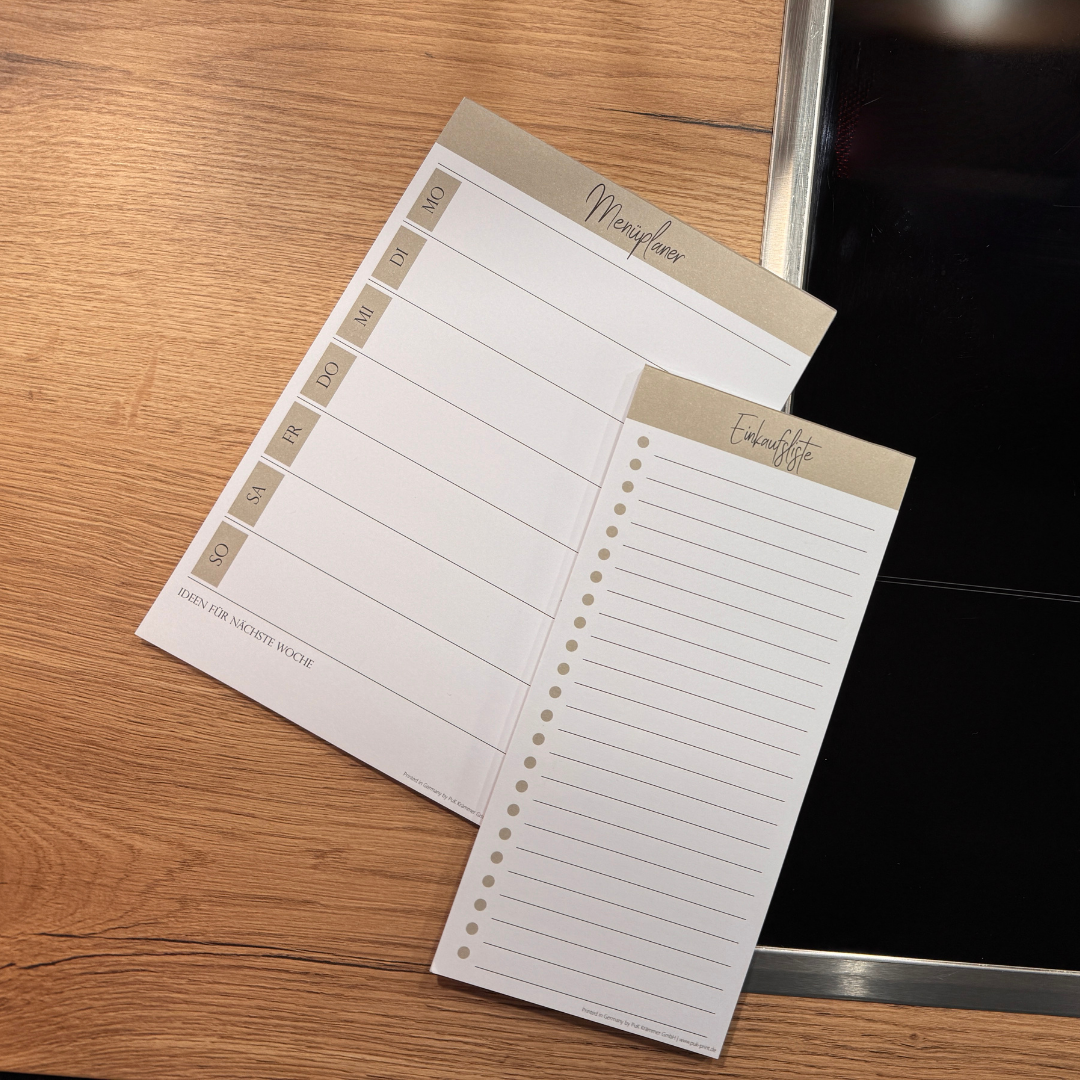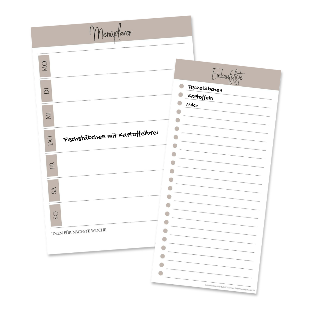 Mit dem Menüplaner- und Einkaufslisten-Block-Set von PuK bringst du Struktur und Übersicht in deine Woche! Plane deine Mahlzeiten im Voraus und behalte mit dem praktischen Wochenüberblick deine Ernährung und die de kompletten Familie jederzeit im Blick. Die schlichten, modernen Blöcke sind nicht nur funktional, sondern auch ein hübscher Hingucker in jeder Küche. Dank der optional erhältlichen Magnetrückseite kannst du sie einfach am Kühlschrank befestigen – perfekt, um spontane Ideen oder fehlende Zutaten sofort zu notieren. Beide Blöcke bieten auf 50 Blättern in DIN A5 und DIN lang ausreichend Platz für deine Planung. Hergestellt in Deutschland auf hochwertigem 80 g/m² Offsetpapier mit stabiler Verleimung und Rückpappe – für langlebige Qualität und eine Extraportion Organisation im Alltag!