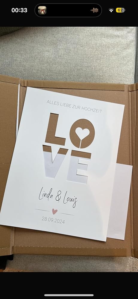 ✂️ AUSGESCHNITTEN GELIEFERT: Wir liefern das Poster bereits vorgestanzt, sodass direkt mit dem Bestücken des personalisierten Hochzeitsgeschenks begonnen werden kann.